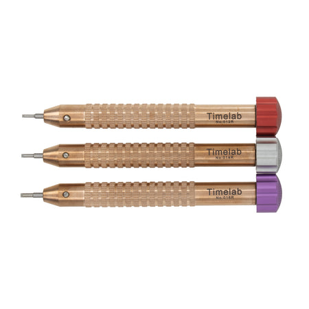 Compared with the slimmer Timelab No. 015‑R screwdrivers, the 3 jumbo T‑shaped models are engineered to make removing glued link pins from watch bracelets easier. Each compact tool is built from heavy‑duty stainless steel to ensure lasting durability and dependable performance.